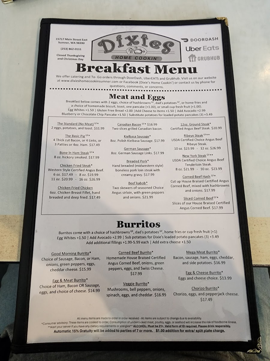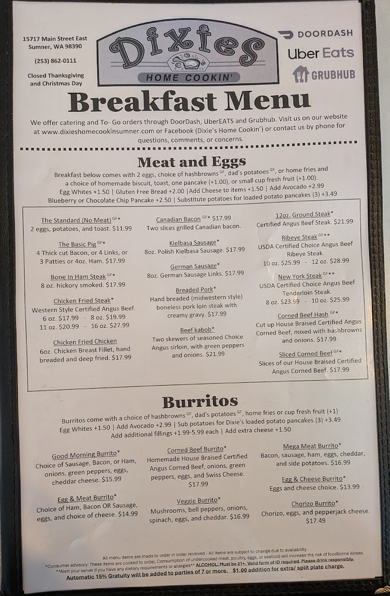 Welcome to Dixie's Home Cookin', your go-to destination for classic American fare in Sumner, WA. Nestled on Main Street, this cozy diner excels in hearty breakfast and lunch options that cater to all appetites.